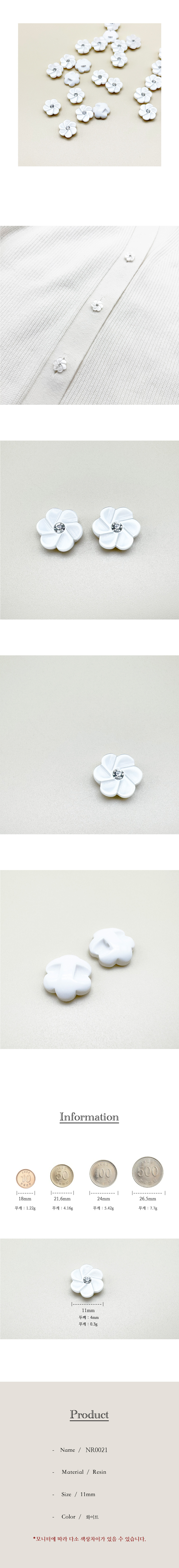 심플 꽃모양 큐빅 레진단추 11mm(2개입)