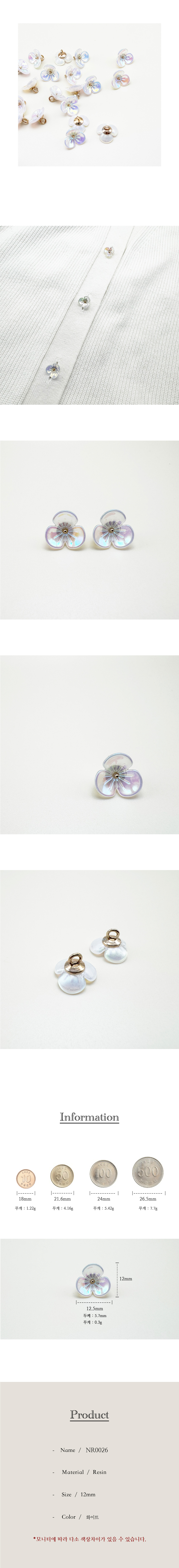 오로라 입체 미니 꽃모양 레진단추 12mm