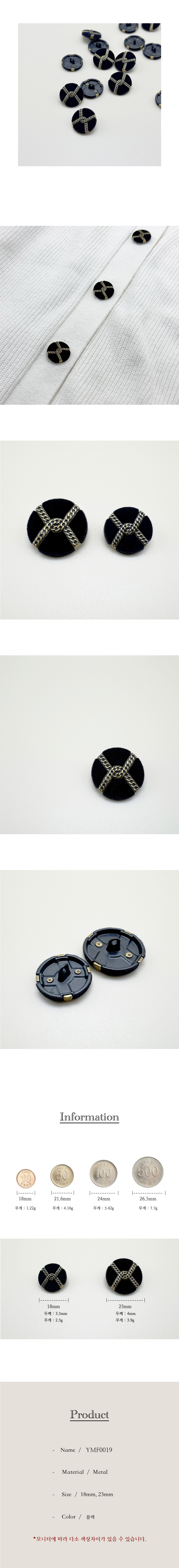 체인 벨벳 패브릭 트위드 원형 금속단추 18mm,23mm