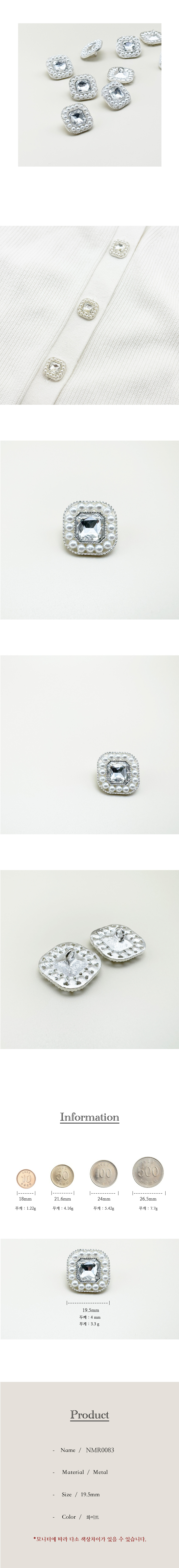 네모 진주 트위드 큐빅 금속 단추 20mm