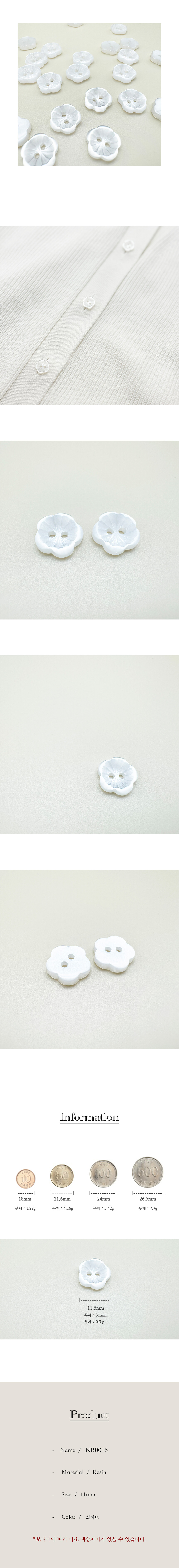 2구 입체 꽃모양 레진 단추 11mm(2개입)