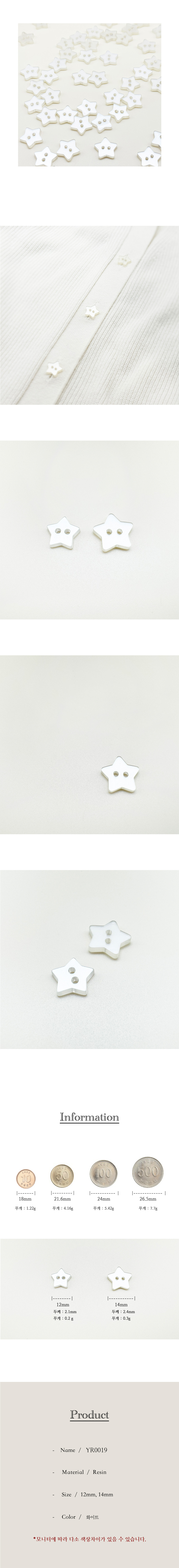스타 미니 별모양 레진 단추 12mm,14mm(2개입)