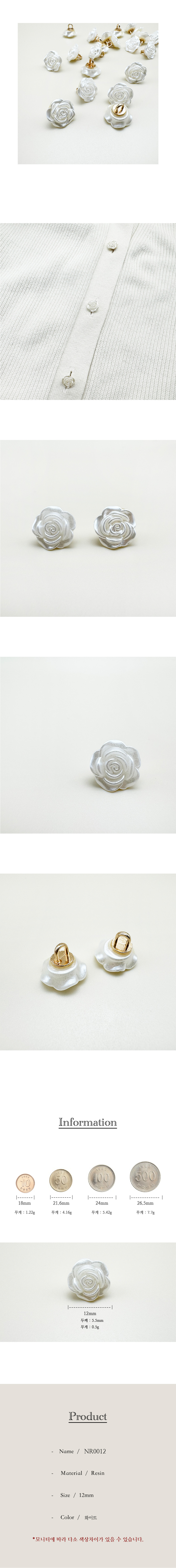 진주빛 입체 장미 꽃 꼬다리 레진 단추 12mm(2개입)