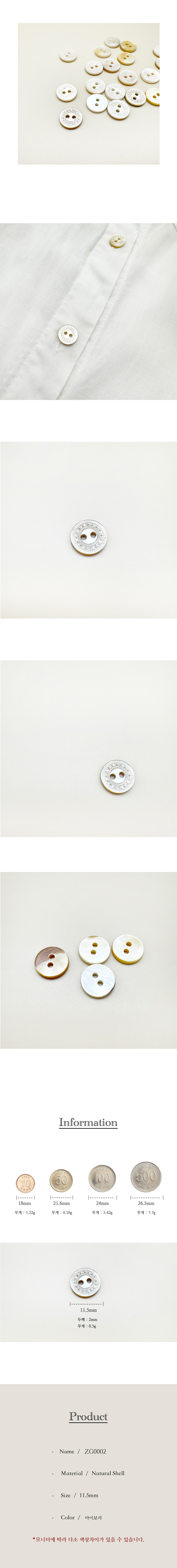 각인 아이보리 2구 자개 단추 11.5mm (2개입)