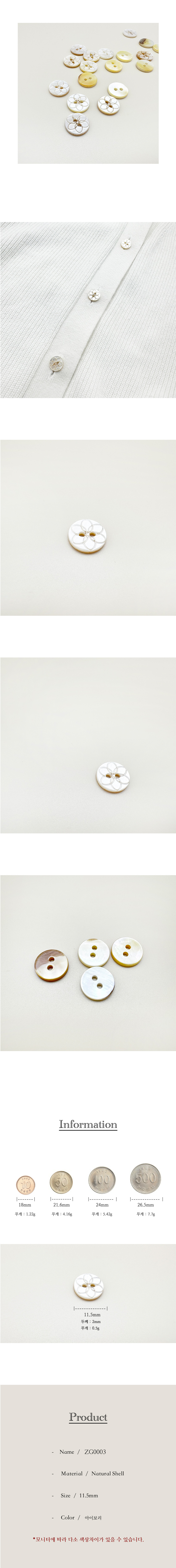 각인 아이보리 2구 꽃 자개 단추 11.5mm (2개입)