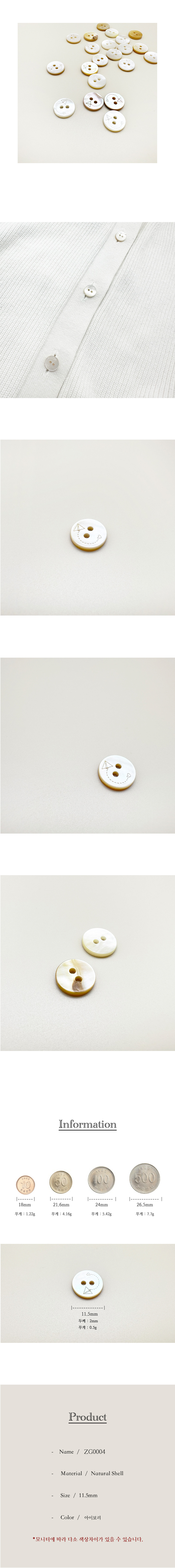 각인 아이보리 2구 자개 단추 11.5mm (2개입)