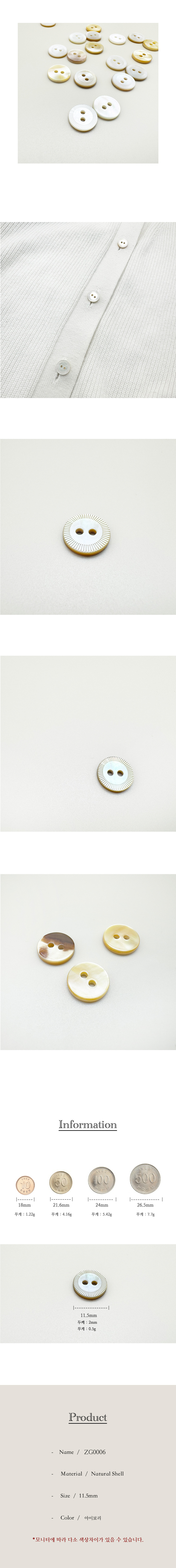 각인 아이보리 2구 자개 단추 11.5mm (2개입)