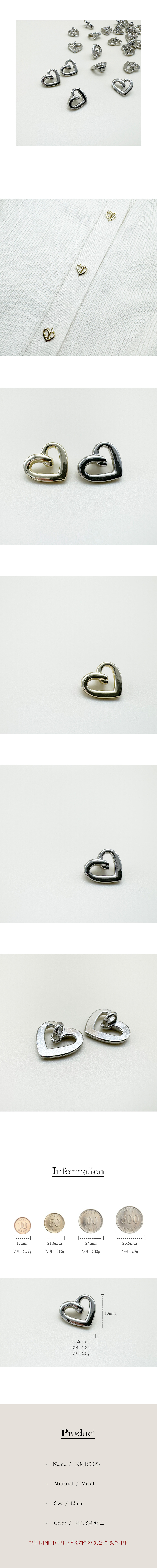 작은 꼬임 하트 미니 금속단추 13mm