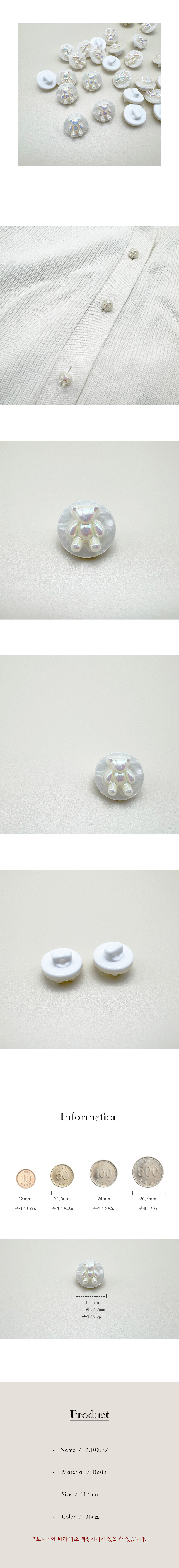 오로라 입체 귀욤 곰돌이 레진단추 11mm(2개입)