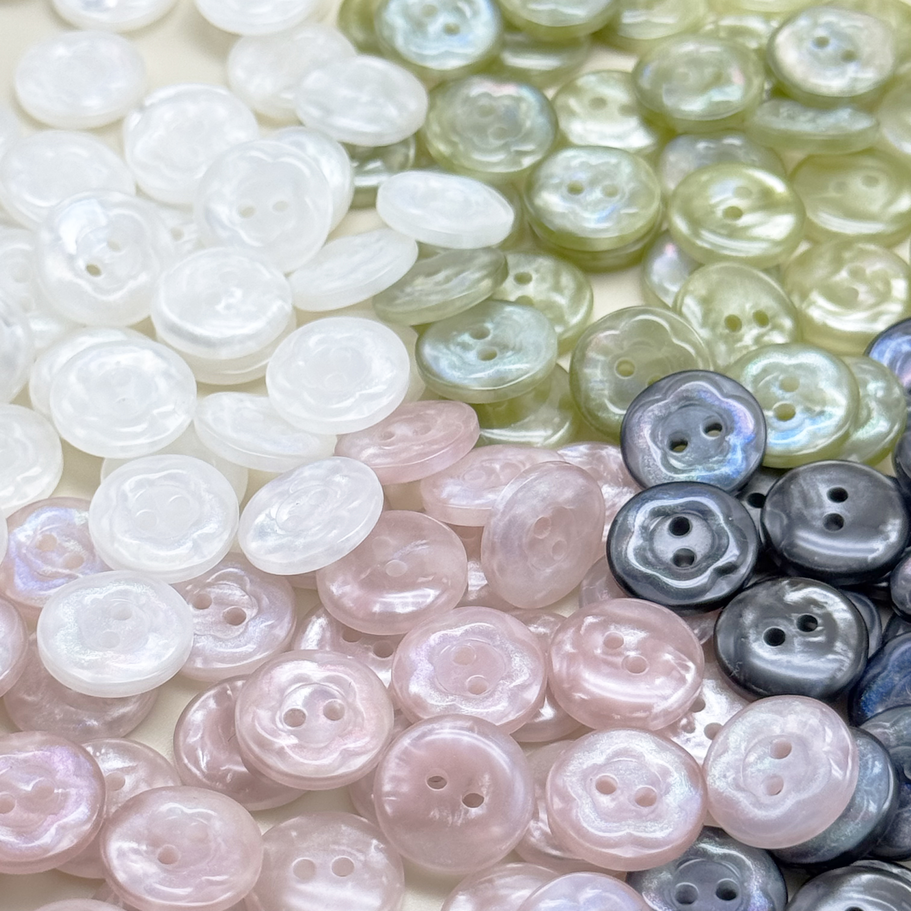 샤인 오로라 볼륨 꽃 2구 레진단추 12mm,15mm,20mm(2개입)