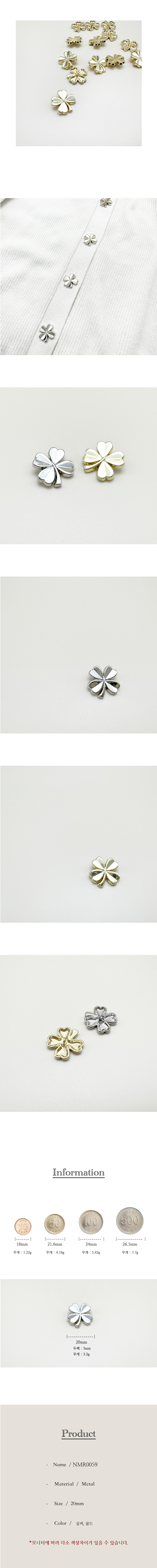 클로버 메탈 단추 20mm