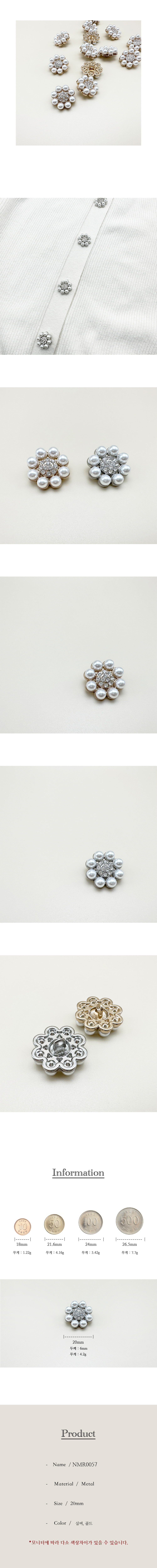 눈꽃 진주 큐빅 메탈 단추 20mm