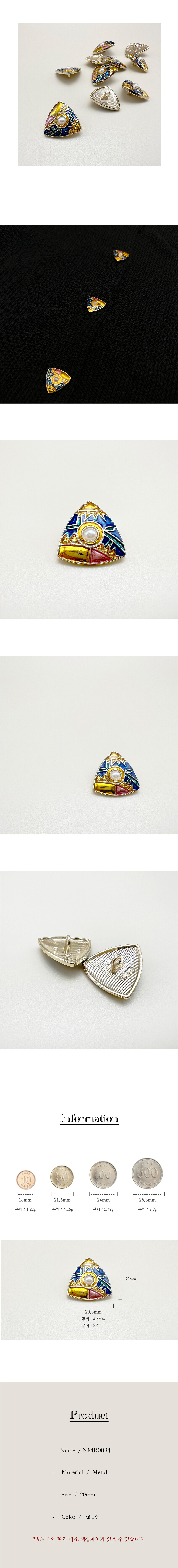 인디언 진주 삼각 금속단추 20mm