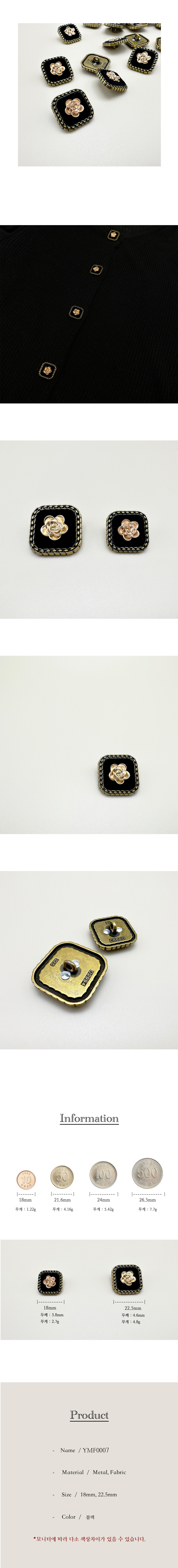 빈티지 벨벳 꽃 네모 금속단추 18mm, 23mm