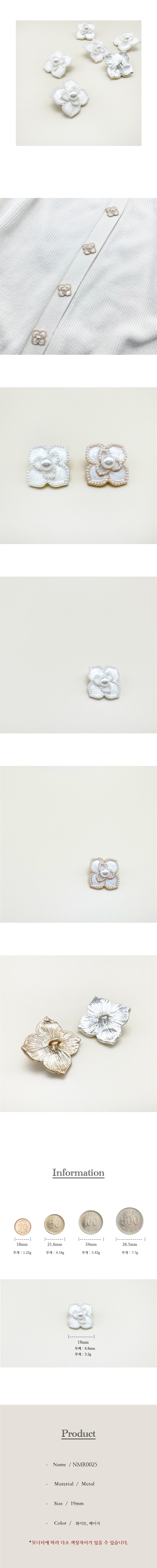 꽃모양 진주 금속 단추 19mm