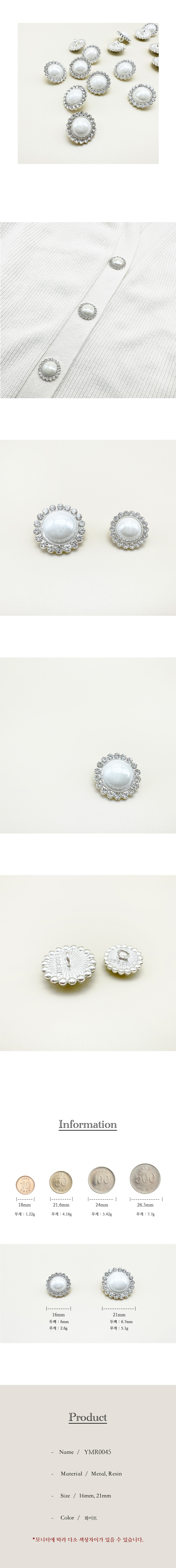 큐빅 진주 원형 메탈 단추 16mm, 21mm