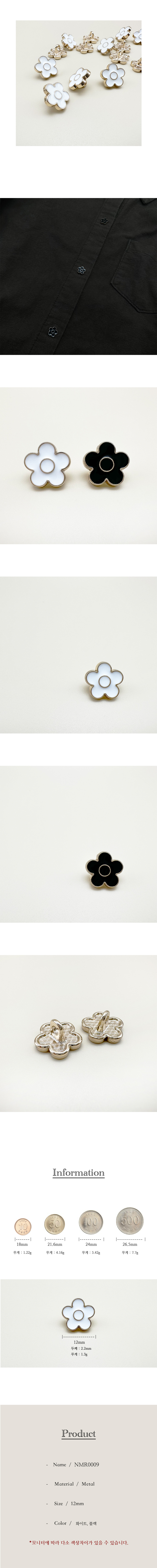 꽃모양 금속 단추 12mm